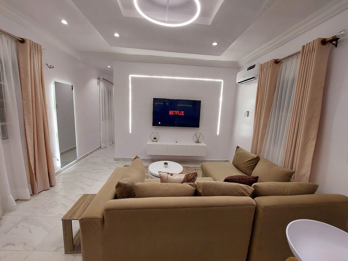 Relax with the whole family at this peaceful and luxurious 2-bedroom serviced apartment located in the serene enclave of the Akin Leigh environment off Admiralty Way, Lekki. This tranquil, tastefully furnished 2 bedroom apartment embodies the perfect blend of modern architecture, state-of-the-art appliances and breathtaking vistas with finishing that were thoughtfully considered. The apartment is equipped with Super Fast Wi-Fi (Fibre Optics), 24x7 power & 24x7 private security