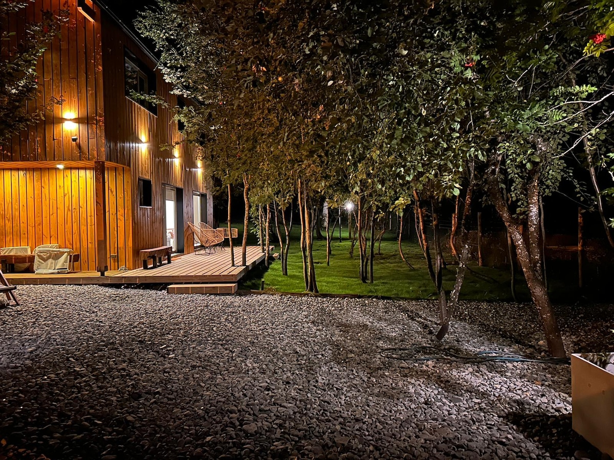 Bain sult as an gcábán te tuaithe seo, agus crainn agus an dúlra thart timpeall air. Tá seomraí geala ann, sonraí tuathúla, agus ábhair uaisle a chruthaíonn atmaisféar uathúil. Tá cistin ann ina bhfuil oigheann, citeal leictreach, gléas caife agus tóstaer. Le gairdín mór chun taitneamh a bhaint as an taobh amuigh agus gríoscán foirfe chun beárbaiciú a roinnt i dtimpeallacht nádúrtha chiúin. Foirfe do shaoire lánúin agus do thréimhse fanachta chiúin i dteagmháil leis an dúlra.