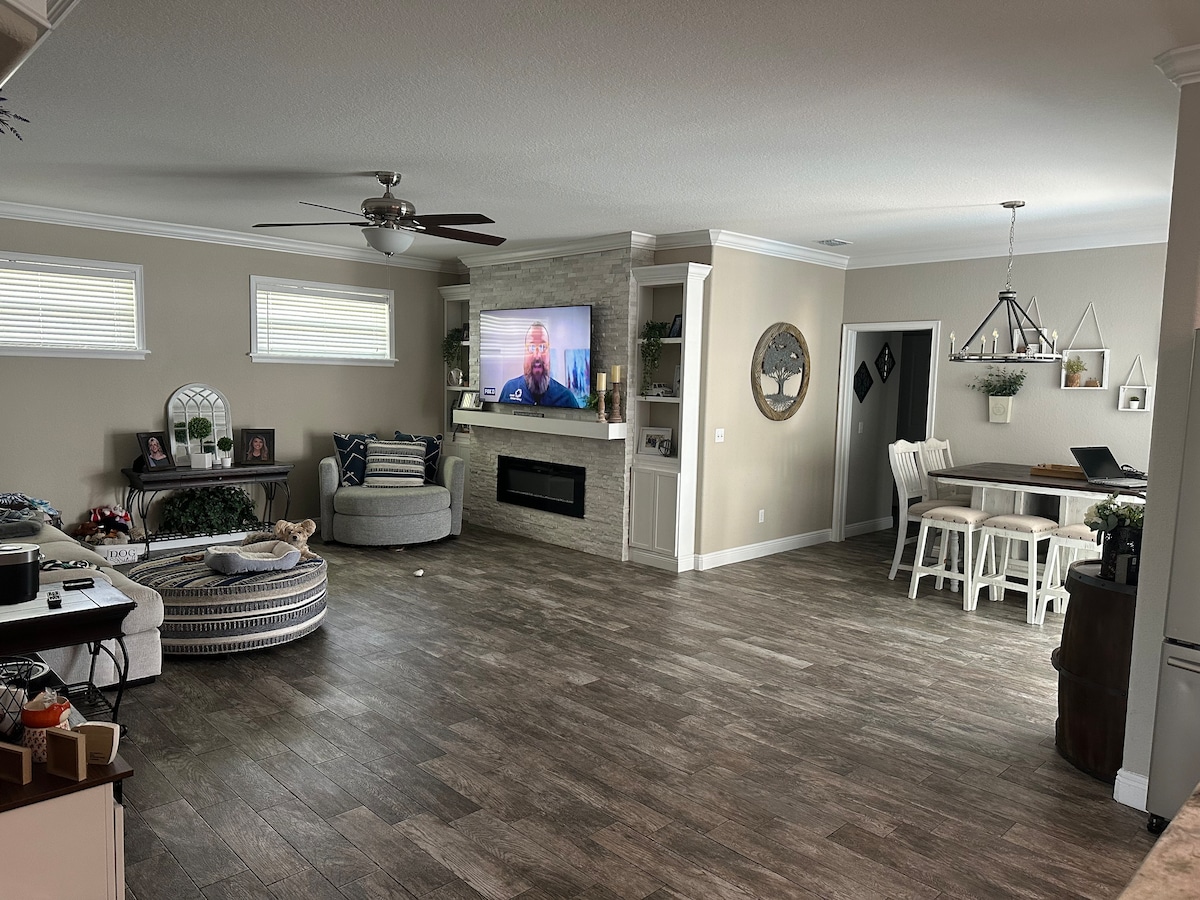 An teachín álainn seo ina bhfuil 1,000 troigh chearnach de spás maireachtála, dhá sheomra leapa, seomra folctha amháin, seomra bia. Bain sult as an radharc ón bpaitió atá ag breathnú amach ar an gcúlchlós nó lig do scíth i seomra Florida ar luascán traidisiúnta. Níl Conair Chabhlach Van agus Páirc na Saoirse ach cúpla clós ar shiúl. Tá nithe is díol spéise a bhfuil tóir orthu amhail Fantasy of Flight, Dinosaur World, Lego Land, agus Disney in aice láimhe. Tá an Lakeland Mall 10 nóiméad ar shiúl ó scannáin & bialanna. Níl ach siúlóid ghearr uait, gheobhaidh tú dhá bhialann teaghlaigh. Cuir d'fhanacht in áirithe inniu!