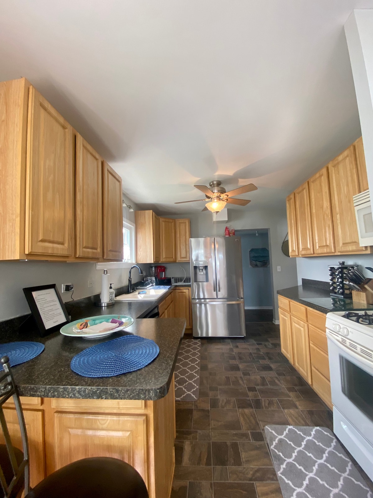 Cistinéad mór, cluthar, suite w milis le haghaidh béilí “iniompartha ”; cuisneoir/ reoiteoir lánmhéide; deasc scríbhneoireachta don obair. Go leor rudaí beaga ( i gcás go ndearna tú dearmad) chun tú a choinneáil compordach. Is baile ciúin é seo ar Loch Michigan taibhseach. In aice le: 6 Bhratach, Bunáit Chabhlaigh na Lochanna Móra; Ionaid Cóireála Ailse Mheiriceá & cathair Chicago tríd an Metra sa bhaile. Áisiúil & Ciúin. Tá 3 mhadra agam. Tá siad cineálta, ag dul amach agus beidh siad ag iarraidh bualadh leat.