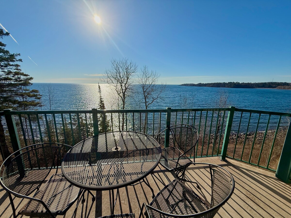 Sealla fairsing atá oiriúnach do theaghlaigh le sabhna, seomra cluiche, amharclann, seomra páistí agus go leor eile! Múscail radhairc áille ar Superior ó do phríomhsheomra leapa, déan bricfeasta i do chistin lánfheistithe nó tiomáin dhá nóiméad chuig an gcaife Rustic Inn, áit a bhfuil an phióg is fearr a bhí againn riamh (an sméar Cladach Thuaidh). Tar éis lá gnóthach iniúchadh a dhéanamh ar shuíomhanna, ó Pháirc Stáit Gooseberry go Teach Solais na Carraige Scoilte, laistigh de 10 -15 nóiméad ó do bhunáit bhaile, is féidir leat do scíth a ligean le beoracha ag Grúdlann an Chaisleáin Danger.