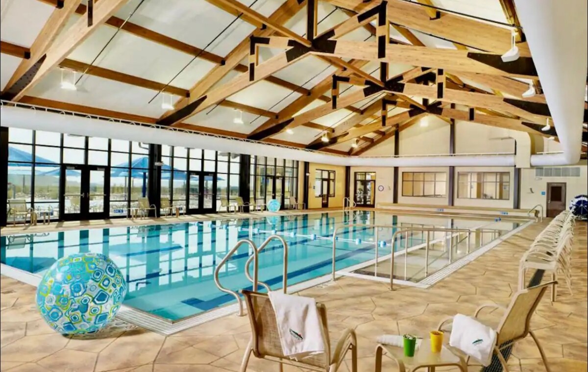 Fáilte go dtí The Golf View, áit a mbuaileann an scíth agus an spraoi le chéile! Tá an áit chónaithe 1 sheomra leapa, 2 sheomra leapa seo foirfe do shaoire ghearr rómánsúil nó d'eachtra gailf ina bhfuil pals. Cuir sárshaothar cócaireachta sa chistin lánfheistithe, fuaraigh amach le roinnt foinn seanré ar an lochta mezzanine, nó bí ag breathnú ar na seónna is fearr leat ar an 50" Smart TV. Lasmuigh, lig do scíth ar an deic nó bí teolaí timpeall bhord an phoill dóiteáin le haghaidh roinnt oícheanta dodhearmadta. Cuir d'fhanacht in áirithe anois agus ullmhaigh d'eispéireas poll - in - one!