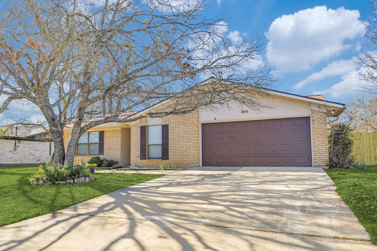 Tóg anáil dhomhain, cuir do chosa in airde agus bain sult as na radhairc ón gcnoc tíre ciúin seo Casita! Mhionnófá go raibh tú amuigh faoin tír ach ní nach ionadh go bhfuil an teach beag iontach seo go litriúil nóiméad ó I -35 agus ó Chearnóg Georgetown. Tógtha in 2018 déileálfaidh an teach seo leat le timpeallacht chiúin agus saoráidí nua - aimseartha. 1 leaba/1 seomra folctha, leaba bhanríona + tolg codlata banríona fillte amach. Caithfidh sé a bheith 25 bliain d'aois chun áirithint a dhéanamh, gan aíonna faoi bhun 15 bliana d'aois. Gan pheataí, gan tobac, gan galú. Seiceáil isteach/amach éasca trí eochaircheap.