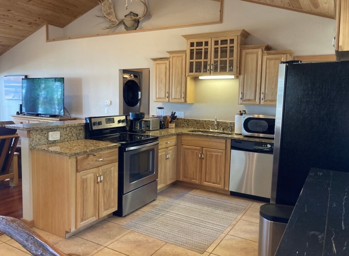 Suite ar bhruacha suaimhneacha Loch Kerr álainn, is tearmann teaghlaigh iontach é ár réadmhaoin fhairsing, ina bhfuil faiche mhéith cois uisce a shíneann chuig duga príobháideach. Suigh agus féach ar na báid ag dul thart, nó bain sult as an dúlra flúirseach. Féach ar luí gréine iontacha a phéinteálann an spéir beagnach in aghaidh na hoíche, is fearr taitneamh a bhaint as agus manglam idir lámha agat. Le go leor spáis le haghaidh scíthe agus gníomhaíochta, ná bíodh drogall ort do bhréagáin bháid agus uisce a thabhairt leat. Táimid ag ceadú madra amháin faoi bhun 45 lb anois. Tá táille peataí $200 i bhfeidhm.