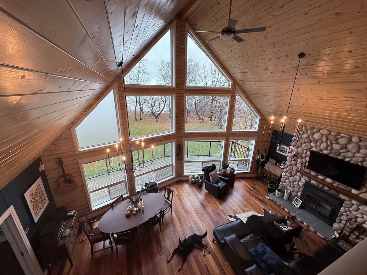 Lig do scíth leis an teaghlach ar fad nó le grúpa cairde ag an gcábán cluthar seo cois uisce ar Loch Dauphin. Bain sult as an trá phríobháideach sa samhradh nó as iascaireacht oighir sa gheimhreadh! Ó áit mhór chónaithe agus cistin itheacháin, téigh amach ar an deic mhór cois locha ina bhfuil tolglann agus áiteanna itheacháin ar leith. Tugann an dara deic radharc eile ar Shliabh Marcaíochta ó Dheas. Níl ach 15 nóiméad ó Dauphin, in aice le Stoney Point Beach, cuireann an cábán seo go leor gníomhaíochtaí ar fáil ó cheann ceann na bliana.