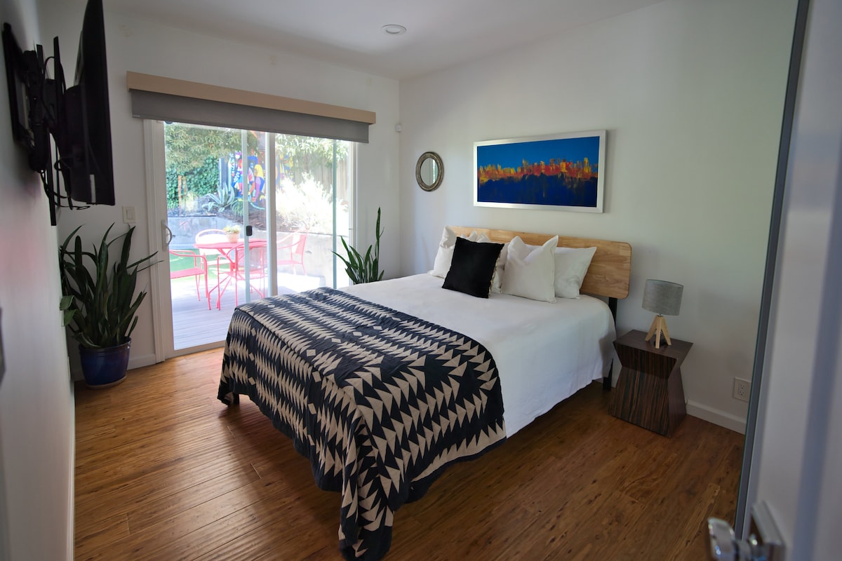 Neadaithe i gcomharsanacht shuaimhneach, cuireann ár stiúideo an meascán foirfe de chompord, áisiúlacht agus suaimhneas ar fáil. Agus tú ag teacht isteach trí do bhealach isteach príobháideach, beidh tú i dtearmann teolaí atá deartha le haghaidh do scíthe agus do thaitneamh. Tá ár stiúideo in áit lárnach le rochtain éasca ar lár Oakland, Loch Merritt, agus SF. Tabhair faoi deara, le do thoil, gur aonad muintire é seo ina bhfuil ballaí comhroinnte. Ní mór d'aíonna siúl síos cabhsa coincréite claonta le céim amháin chun rochtain a fháil ar an spás.