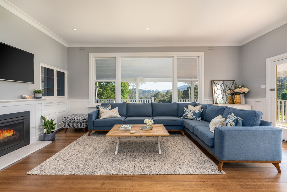 Le radhairc iontacha amach ar Shliabh Victoria, rinneadh an teach seo sna 1950idí a athchóiriú agus a nuachóiriú go grámhar i bplean oscailte, spás geal. Níl ach cúpla nóiméad siúil go dtí Príomhshráid Warburton, is féidir leat dul ag spaisteoireacht isteach sa bhaile mór nó díreach suí ar an deic mhór agus éisteacht leis an iliomad éan sna crainn máguaird. Cistin oscailte le fearais Ghearmánacha, téitheoir adhmaid d'oícheanta teolaí agus leaba rí chun féachaint ar an iliomad néalfhoirmíochtaí a shíobann thart, rud a fhágann go bhfuil an saoire ghearr seo chomh speisialta sin.