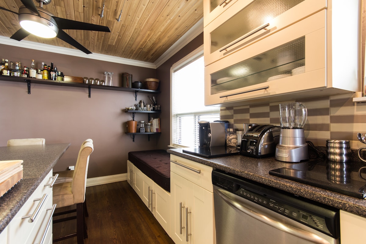 Teach scoite 5 sheomra leapa an - teolaí (príomhurlár & íoslach) i gceantar síochánta atá oiriúnach do pháistí. Teach atá deartha go hálainn agus a nuashonraítear go minic le troscán ardchaighdeáin chun go mothóidh tú go bhfuil tú sa bhaile. Tá an áit oiriúnach do theaghlaigh suas le 10 nduine. Suíomh den scoth: Siúlóid 7 nóiméad go Mimico Go (2 stad go Stáisiún an Aontais) Siúlóid 2 nóiméad chuig stad bus chun dul go díreach chuig Royal York Subway, 10 -15 nóiméad sa charr go dtí an t - aerfort/lár na cathrach. Earraí grósaera/bialanna iontacha in aice láimhe.