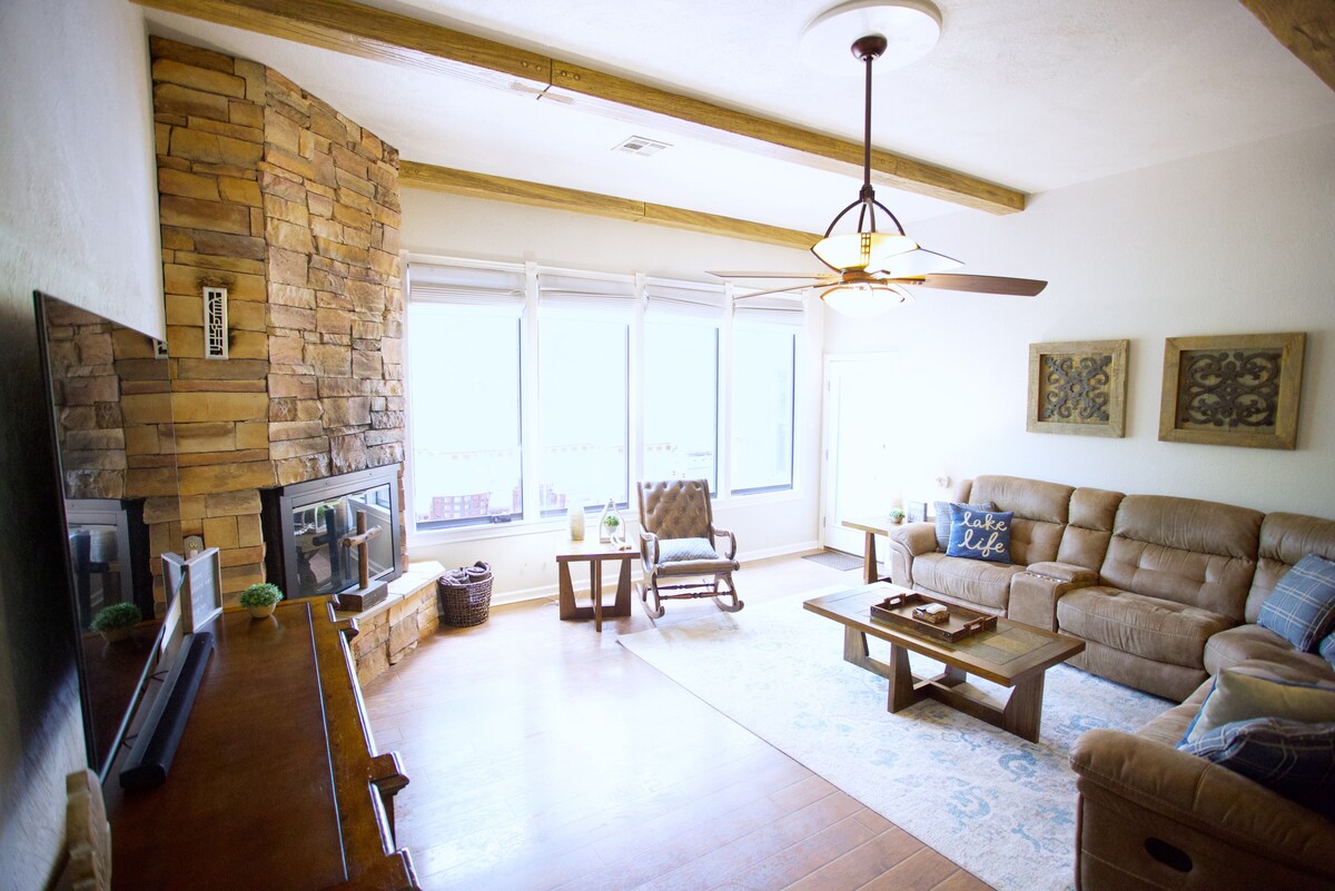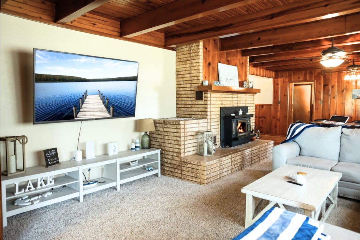 An bhfuil tearmann príobháideach iontach á lorg agat? Tá 4 spás cónaithe/bia sa teach cois trá seo, 3 sheomra leapa, 2 sheomra folctha iomlána, agus tá 9 seomra codlata ann (gan toilg san áireamh). Díreach céimeanna ón loch, tá sé foirfe do theacht le chéile teaghlaigh agus cairde. Bain sult as an deic mhór, an paitió, agus na háiteanna cócaireachta, atá oiriúnach le haghaidh siamsaíochta. Tá seoladh agus duga báid pobail le feiceáil ón teach, áit ar féidir leat do bhád a dhuga díreach chun tosaigh. I measc na ngnéithe tá cábla, idirlíon, cistin mhór, HVAC, gríoscáin, daoine a chaitheann tobac, agus sólás maireachtála locha!
