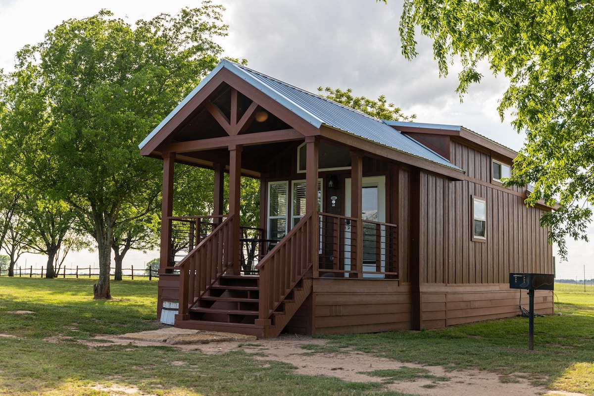 Lig do scíth sa chábán síochánta seo atá suite lasmuigh de chathair Waco faoin tuath. Suigh ar an bpóirse agus bain súimín as an gcaife agus tú ag éisteacht le héin chirp agus ag canadh. Féach ar na ba ó do dheic agus tú ag gíoscán. Tá áit chompordach sa chábán seo do cheathrar aíonna agus tá leaba rí, lochta ina bhfuil dhá leaba dhúbailte agus seomra folctha ina bhfuil cithfholcadán siúil isteach ann. Níl oigheann ann. Tá gríoscán gáis ann a roinntear le cábán eile.