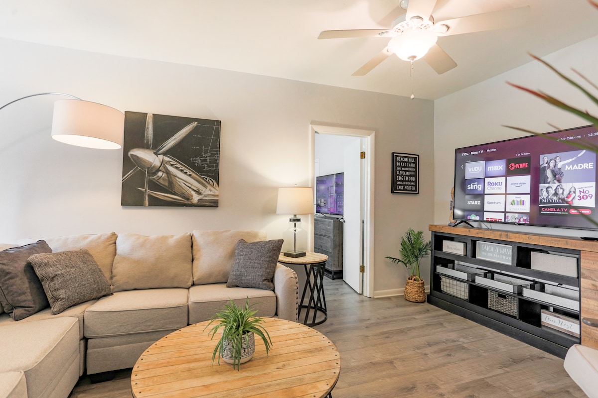 Máistir - Svuít iomlán le leaba rímhéide, bealach isteach príobháideach, cuisneoir, micreathonnán, folcadán lánmhéide le vanities dé agus vardrús siúil isteach. Amach ar ais tá póirse ollmhór w/tolg & dhá charraig. Tagann an cuisneoir i stoc le sóid agus uisce. Tá teilifíseán 55"ann le cábla agus Wi - Fi. Tá an seomra cúlráideach ón bpríomhlimistéar maireachtála le rochtain phríobháideach. Beidh príobháideacht iomlán ag an aoi le linn an fhanachta. Tá ár dteach suite 5 nóiméad ó I4, HCC Plant City & Downtown Plant City i bpobal Geata.