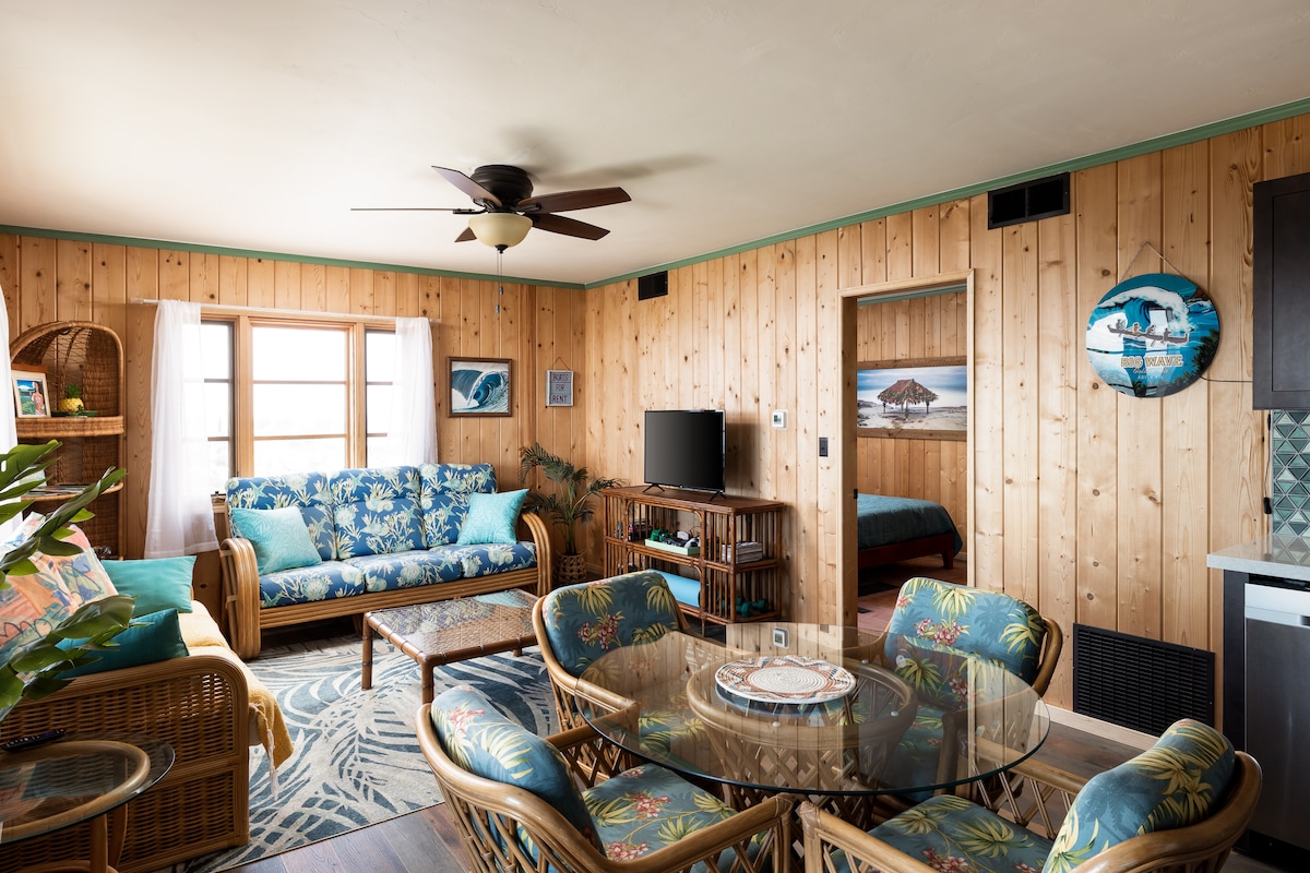 The Morey de Prieto Surf Ranch is truly awesome! Reserve your stay in this 2 Bed/1 Bath 650 sq. ft. casita for six. Home includes a kitchen with a GE electric cooktop, refrigerator, microwave/air fryer, rice cooker, mixer for drinks, sink with prep trays, Moen faucet fixtures, gorgeous shower, Krups coffee maker, 50" smart TV equipped with WiFi and NetFlix, mountain views, workspace and a sofa bed. Relax on the large 240 sq. ft. private deck featuring a fire pit, adirondack chairs and BBQ.