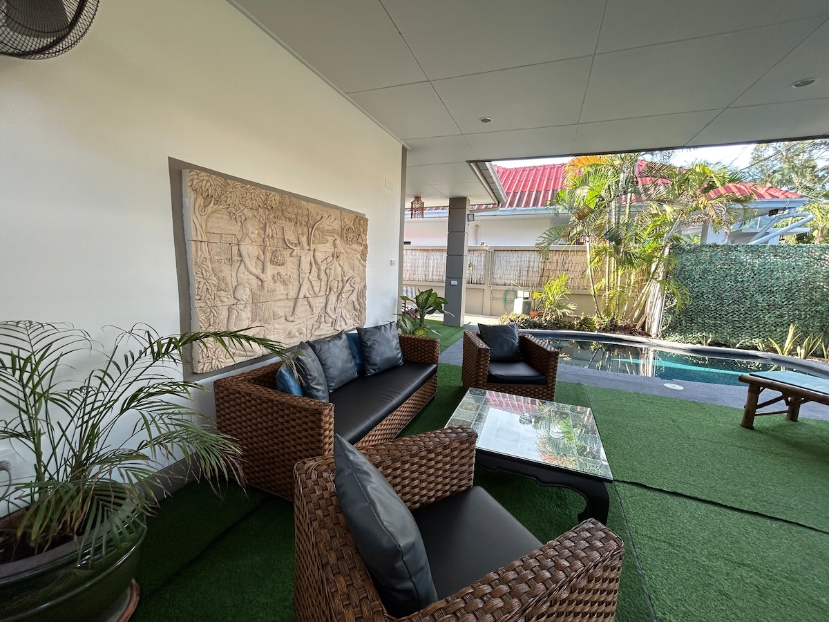 Villa contemporaine en plein centre de Lamai Beach,villa tout équipée avec piscine privée, à 250m de la plage et des commerces, villa dans Une Impasse au calme. Inutile de louer un vehicule vous êtes à proximité de TOUT! Situation parfaite pour tout faire à pieds! idéale pour profiter pleinement de la piscine et de la plage. Composée de 3 chambres climatisées, 2 salles de bains et 2 toilettes, salon climatisé, salle à manger, cuisine équipée, ilot et terrasses Wifi haut débit, TV connect