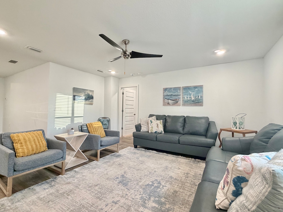 Your group will enjoy this spacious 2nd floor unit with full kitchen and washer/dryer. It also has a balcony with pool view. This is an older unit that is not as updated as some of the others, but great for work crews or families on a budget. 3 bedrooms and two full bathrooms. We provide starter essentials. There are smart tvs and ceiling fans in every room. OWA and Tropic Falls are just across the street. Foley has many great restaurants and it is just 8 miles to the beaches!