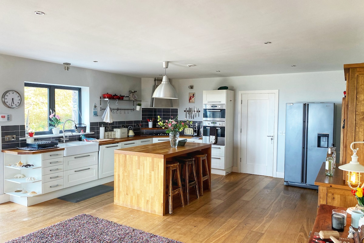 Tagann traidisiúnta le chéile nua - aimseartha sa Teachín Feirme seo atá athchóirithe go hiomlán agus atá suite ar ghabháltas oibre. Seomra leapa lochta fairsing ina bhfuil cúinne cluthar léitheoireachta ag breathnú amach ar pháirceanna agus ar ainmhithe, agus líonann radhairc dhrámatúla sléibhe agus gleanna na fuinneoga le solas. Tógtha le hadhmad agus cloch a fhaightear go háitiúil, agus atá críochnaithe le caibinéadacht shaincheaptha agus feistis cheardaí, is tearmann uathúil é - foirfe tar éis fánaíochta, rothaíochta, saol na feirme, machnamh, nó oícheanta de cheol bríomhar trádála.