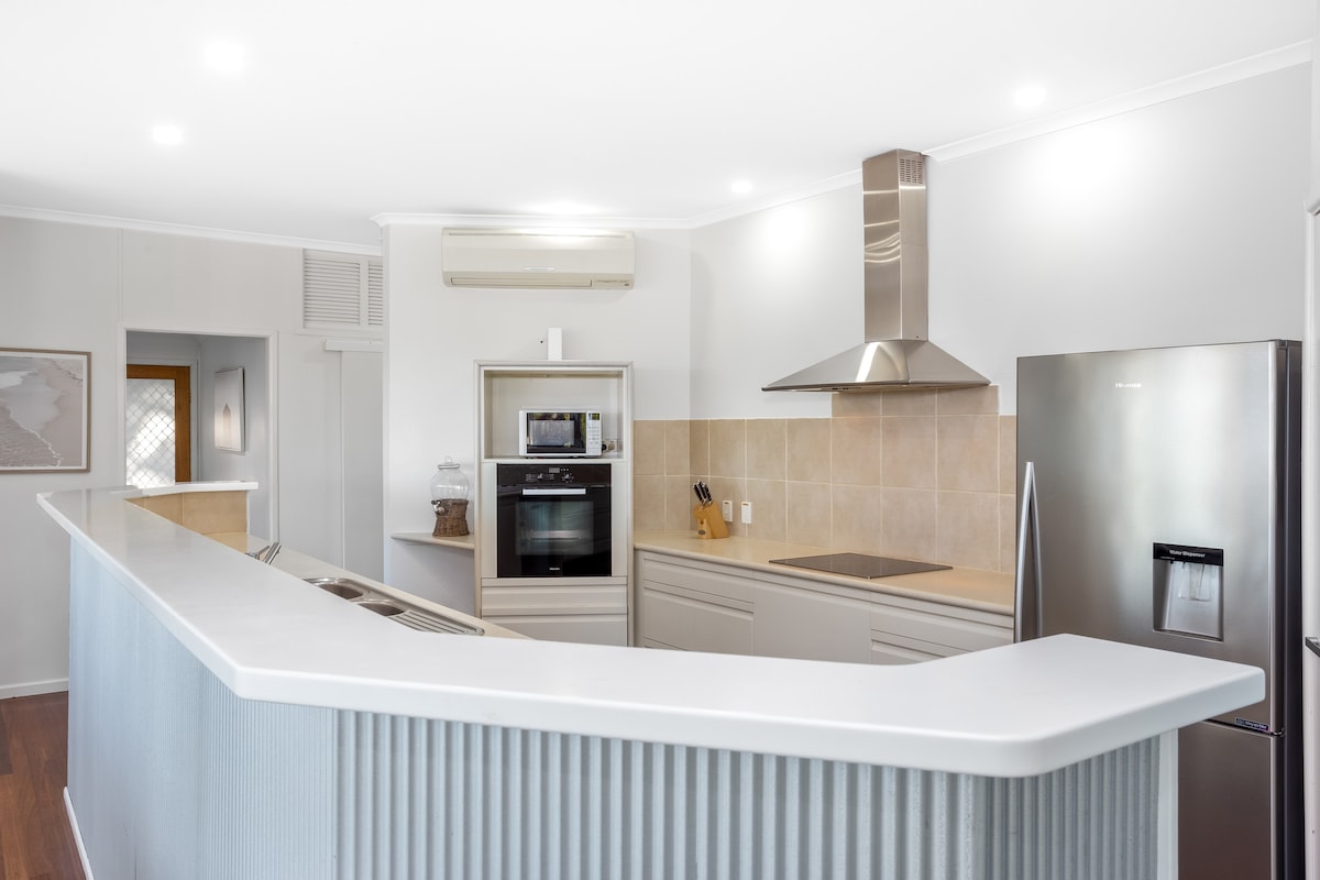 Fáilte chuig an Freeman Retreat! Dúisigh le fuaim na farraige sa teach seo atá feistithe go hálainn. Ciallaíonn láthair bharr an chnoic go bhfuil radhairc iontacha ar an bhfarraige ó gach seomra. Cuach suas le leabhar sa chathaoir uibhe, féach ar éirí na gréine thar an aigéan ó do leaba, nó bain sult as na radhairc. Is áit shuaimhneach í, ach níl tú ach cúpla céad méadar ón trá agus bailiúchán de shiopaí agus caiféanna neamhspleácha atá ag fás in Yeppoon. Beidh rudaí breise cineálta cosúil le trealamh trá agus cluichí ar bharr d'fhanachta.