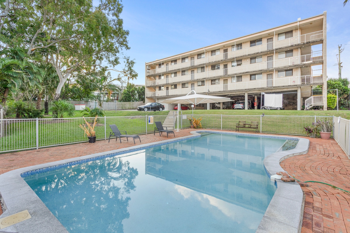 Tá an t-árasán gleoite seo ar an mbunurlár suite go hidéalach díreach trasna ó Thrá Lammermoor, ceann de na tránna is áille agus is mó éilimh ar Chósta Capricorn. Ag tairiscint an chuid is fearr den dá shaol, bainfidh tú taitneamh as an trá ag do dhoras tosaigh agus as linn snámha ar chúl. Suite idir lár bhaile Yeppoon agus Cuan Rosslyn, nach bhfuil ach 5 nóiméad sa charr ar shiúl óna chéile. Tá cosán rothar gleoite ar an trá, atá foirfe do spaisteoireacht luath ar maidin, do rothaíocht nó do shiúlóid ag luí na gréine.
