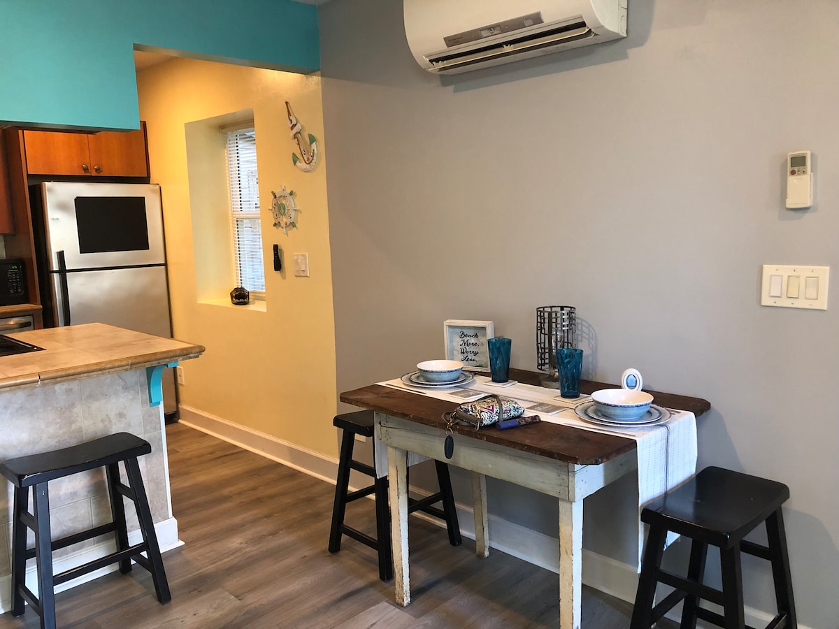 Fáilte go dtí The Sea Turtle ag Riverwalk Cottages! Ní bheidh díomá ort leis an mbungaló stiúideo sómasach seo. Maisithe go deas agus an - ghlan. Suite i gcroílár Carrabelle is féidir leat siúl trasna na sráide chuig siopaí, bialanna agus beáir ar imeall na hAbhann. Táimid CAIRDIÚIL DO PHEATAÍ! NÍ MÓR peata a chur san áireamh san áirithint!!!! Páirceáil fhairsing do d'árthach. Níl trá Carrabelle ach 5 nóiméad síos an bóthar agus tá sé ina turas álainn 30 nóiméad go hOileán San Seoirse Cuardaigh an comhartha Turtair Mhara