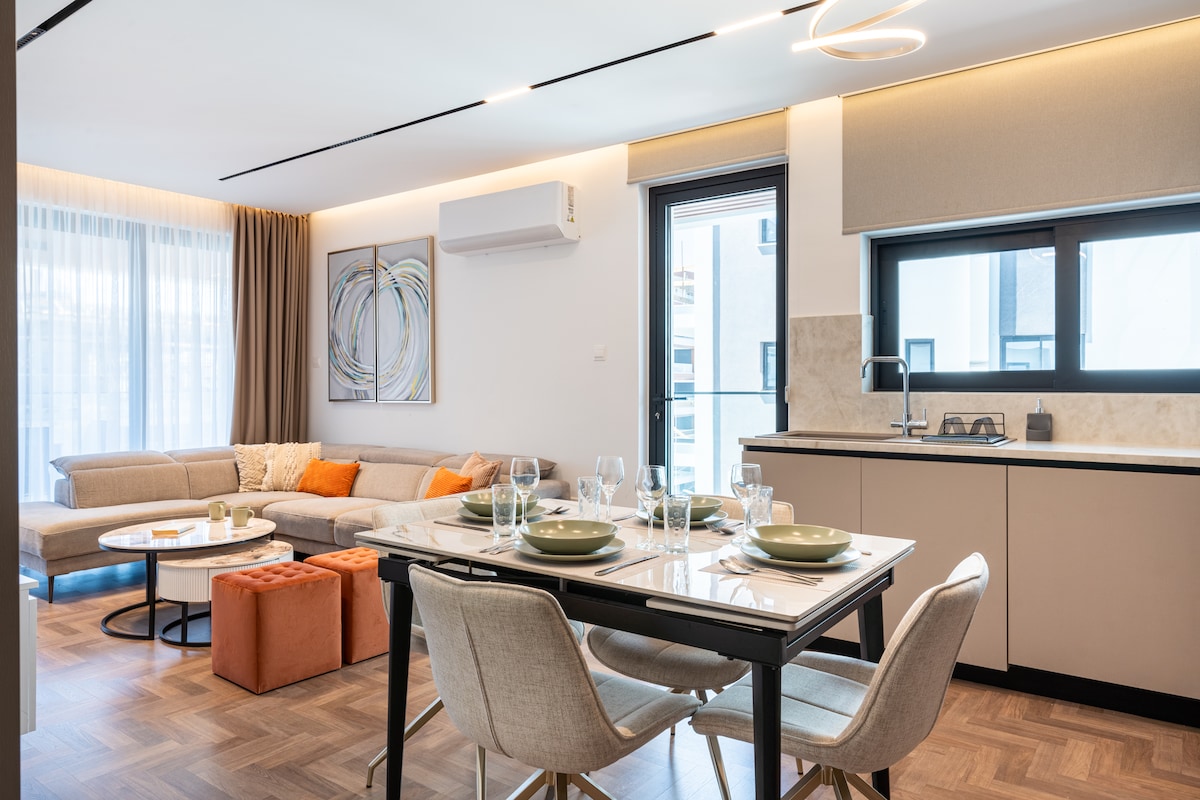 Welcome to our Chic & Modern 1-Bedroom Apartment! This brand-new, tastefully designed apartment offers a cozy and elegant home away from home in a quiet neighborhood, just minutes drive from downtown Larnaca and within walking distance to the beach. Enjoy the comfort of a stylish living area and unwind on the private balcony with lovely side views of the sea - perfect for a morning coffee or a relaxing evening. Ideal for both short getaways and extended stays.