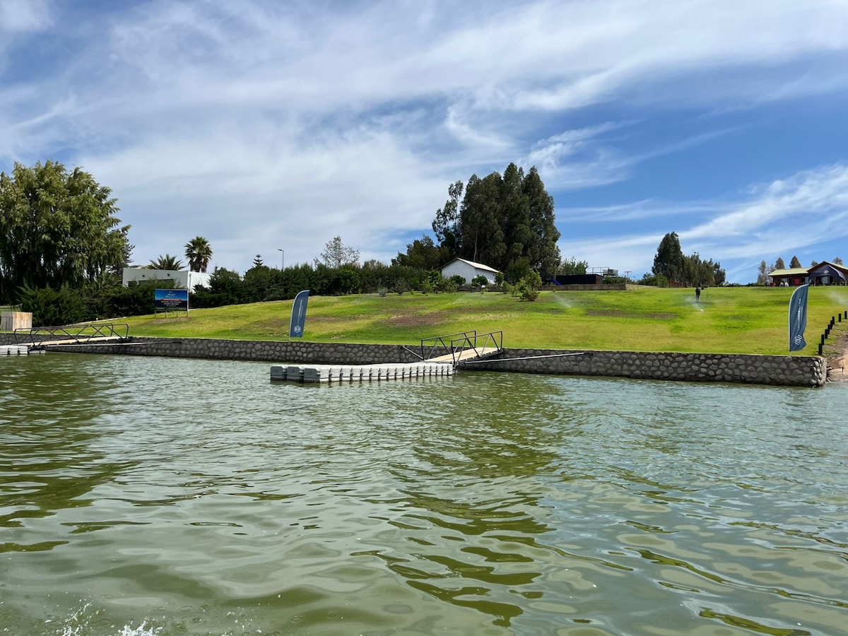 Teach mór compordach in Árasán príobháideach in Lago Rapel. Ideal le roinnt leis an teaghlach. Tá radharc ann ar an loch agus ar dhaoine eile a bhfuil spásanna deasa compordacha lasmuigh acu chun taitneamh a bhaint as an suaimhneas, amhail linn snámha, quincho, maireachtáil lasmuigh agus rochtain ar an loch agus ar an duga ach cúpla méadar ar shiúl. 100% feistithe le haghaidh fanacht taitneamhach. Cadhc do bheirt san áireamh. Tá slándáil 24/7, cúirt leadóige agus duganna coitianta san árasán chun radharc álainn a fháil.