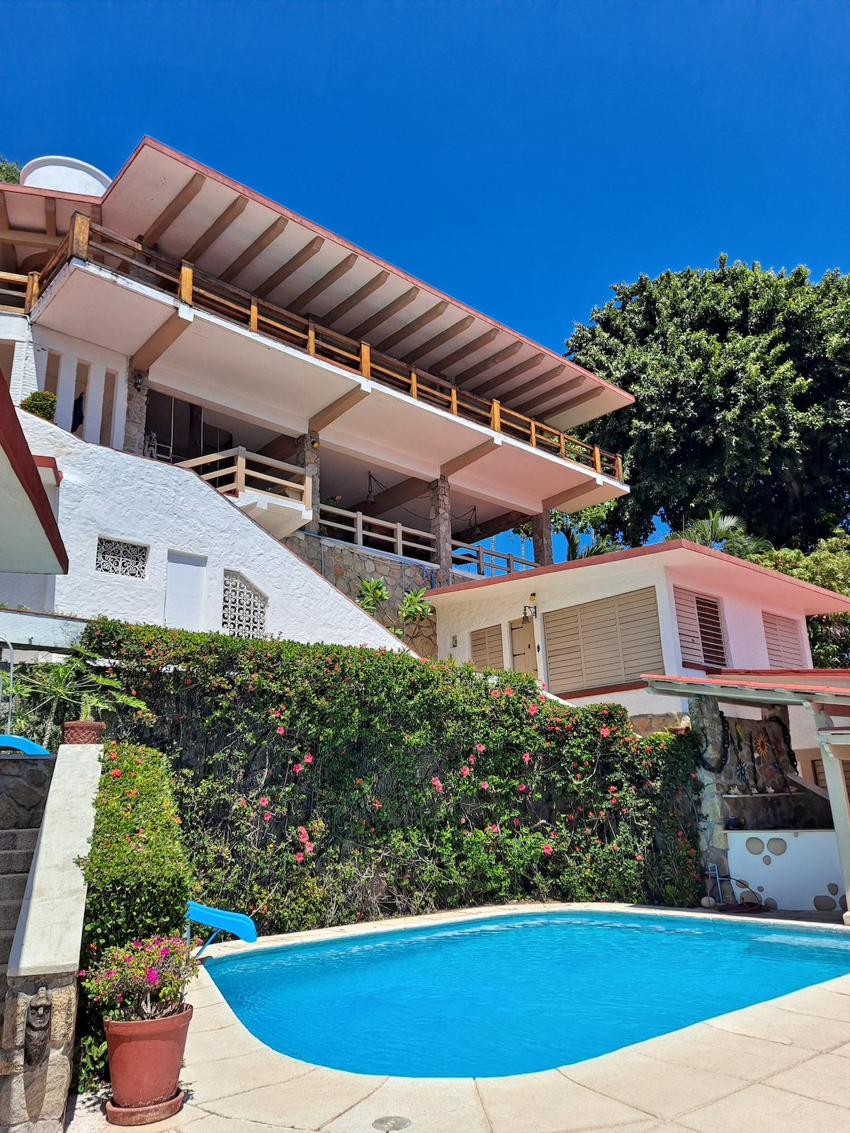Radharc álainn ar an aigéan agus ar bhá iomlán Acapulco ó ardán compordach lasmuigh, atá oiriúnach chun do scíth a ligean mar lánúin nó mar theaghlach. Limistéir oscailte agus linn snámha phríobháideach, le radharc lánléargais eisiach agus 5 nóiméad ó thránna Caleta, Caletilla & Roqueta Island, 3 nóiméad ón gClub Luamh agus 10 nóiméad ó na nithe cáiliúla is díol spéise do thurasóirí in Clavado de la Quebrada.