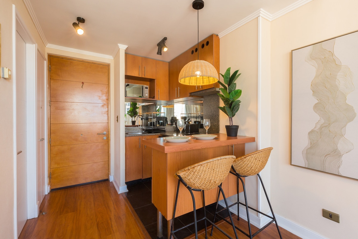 Árasán leis an suíomh is fearr cois farraige, céimeanna ón trá, bialanna agus Casino. Tá sé feistithe go hiomlán ionas gur féidir leat taitneamh a bhaint as ó dheireadh seachtaine, déan d'oifig bhaile chun éalú ón bpríomhchathair nó ó laethanta saoire níos faide. Tá meaisín níocháin agus triomadóir san árasán, cistin atá feistithe go hiomlán. * Níl aon ghríoscán ar an ardán * Tá páirceáil againn ar shiúlóid 5 nóiméad ón árasán, luach 5,000 pesos in aghaidh na hoíche curtha in áirithe.