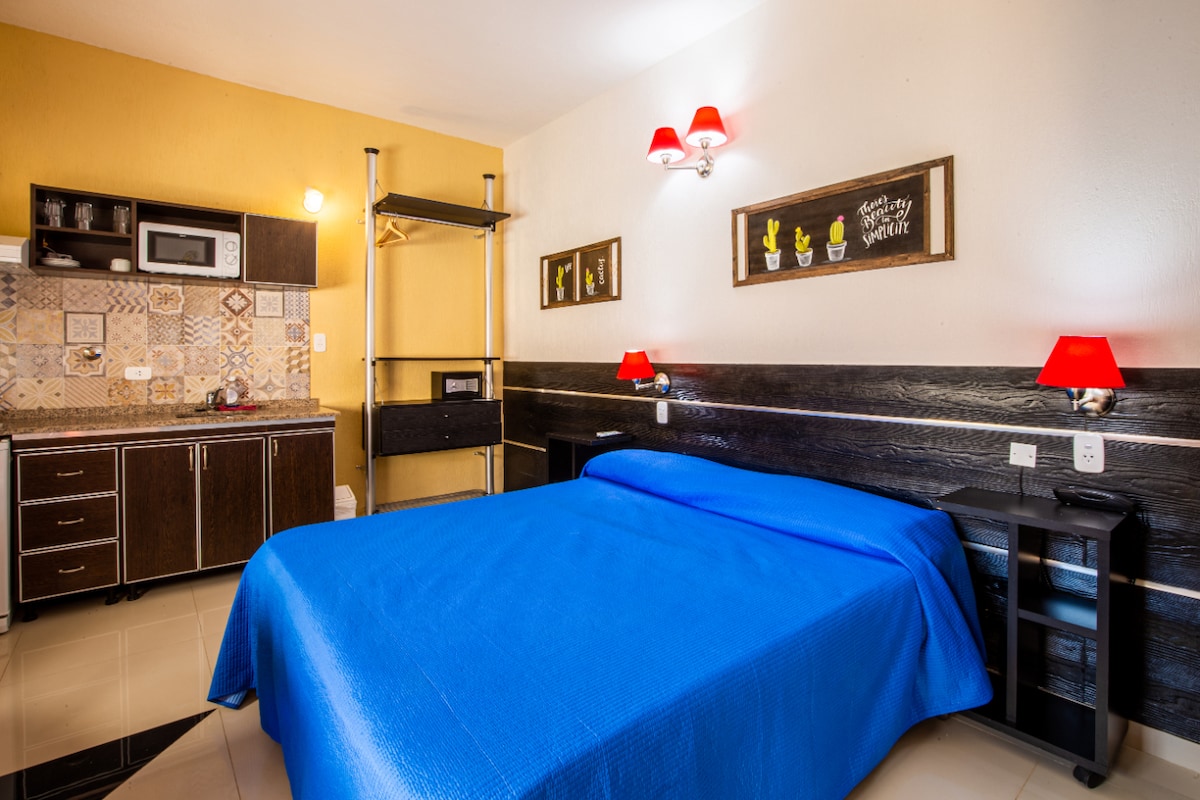 Stiúideo c/ scoilte an - iomlán sa cheantar is fearr de Mar de Ajó, os comhair na farraige agus 100m ón ionad siopadóireachta. Balcóin le radharc na farraige, lánfheistithe do theaghlach de suas le 4 bhall Leaba 2 shuíochán agus leaba nead. Cistin ina bhfuil seomra níocháin (cuisneoir le reoiteoir, micreathonnán, citeal leictreach, tóstaer, súiteoir, gréithe iomlána agus sorn/oigheann gáis nádúrtha) Wifi, 42"LED teilifíse le DIRECTV, DVD agus Mion - chomhpháirteoir. Folcadán iomlán. Socruithe codlata, scáth fearthainne, agus cluichí trá.