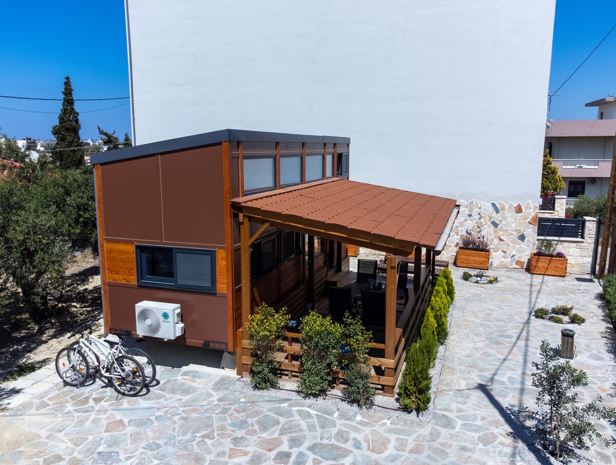Téigh ar ais agus lig do scíth sa spás socair galánta seo, timpeallacht álainn, 5 nóiméad sa charr ó thránna iontacha, an t - eispéireas maireachtála a bheith agat riamh i dteach beag bídeach (villa) uathúil, is é seo an deis atá agat é a dhéanamh. Le spás páirceála príobháideach slán, tiomáint 10 nóiméad ó phríomh - lár na cathrach Heraklion agus fad siúil go dtí an trá.