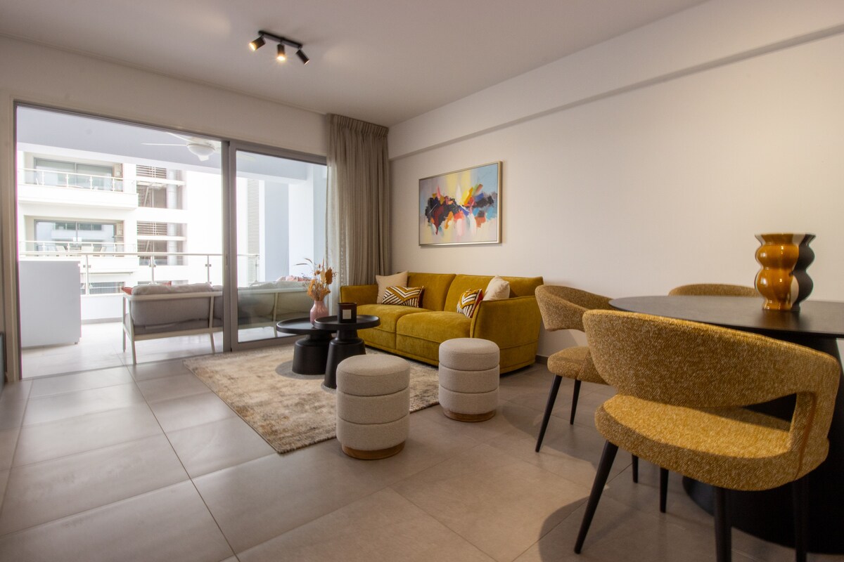 Fáilte go dtí ár n-árasán nua faiseanta aon seomra leapa in Strovolos! Tá radhairc iontacha, balcóin teolaí agus taobh istigh nua-aimseartha geal ag an spás seo ar an urlár uachtair, agus tá oileán cistine álainn ann atá foirfe chun cócaireacht a dhéanamh nó taitneamh a bhaint as caife. Beidh páirceáil clúdaithe saor in aisce, Wi-Fi tapa, agus rochtain éasca ar ollscoileanna, ollmhargaí, caiféanna agus príomhbhóithre agat freisin — gach rud a theastaíonn uait in aice láimhe. Bunáit theach compordach áisiúil do d'fhanacht in Strovolos!