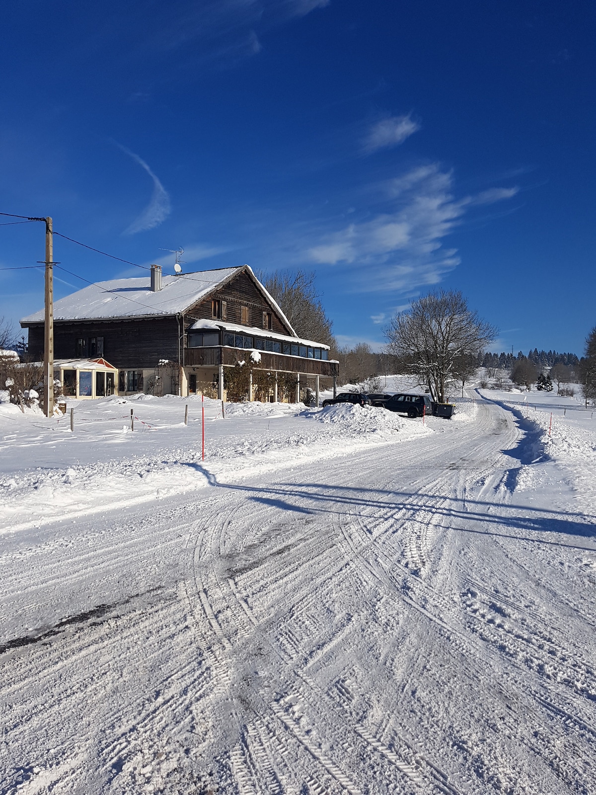 Tá ár lóistín i lár an dúlra , beagáinín ar shiúl ón sráidbhaile (2.5 km). Beidh tú buíoch as an radharc socair. Go leor gníomhaíochtaí chun tú féin a chleachtadh nó leis an teaghlach: fánaíocht, rothaíocht sléibhe, sciáil trastíre nó sciáil síos an cnoc, madraí sled. Lonnaithe 20 km ó Pontarlier, 15 km ó ionad saoire Metabief, 15 km ó loch Malbuisson. Ideal le haghaidh saoire scíth a ligean, spórtúil agus blas, cuirfidh táirgí réigiúnacha gliondar ar do bachlóga blas. Teorainn na hEilvéise 3 km ar shiúl
