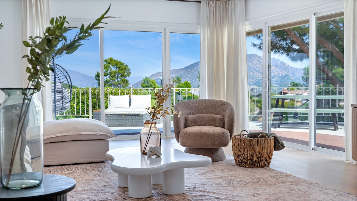 Fáilte chuig ár dteach aíochta nua - aimseartha atá deartha go cúramach - an áit fhoirfe le bheith ar do shuaimhneas agus tú ag tabhairt cuairte ar LA. Bain sult as iomlán an tí aíochta, ó do bhealach isteach príobháideach geataithe go dtí do thearmann paitió féin sa chúlchlós. Dearthóir spreagtha agus faoi thionchar áilleacht nádúrtha Laurel Canyon, cuireann an spás seo formáid álainn oscailte ar fáil a spreagann suaimhneas ach atá suite go lárnach sa chuid is mó de na nithe is díol spéise íocónacha in LA. Déan áirithint anois le haghaidh eispéireas sómasach agus dodhearmadta.