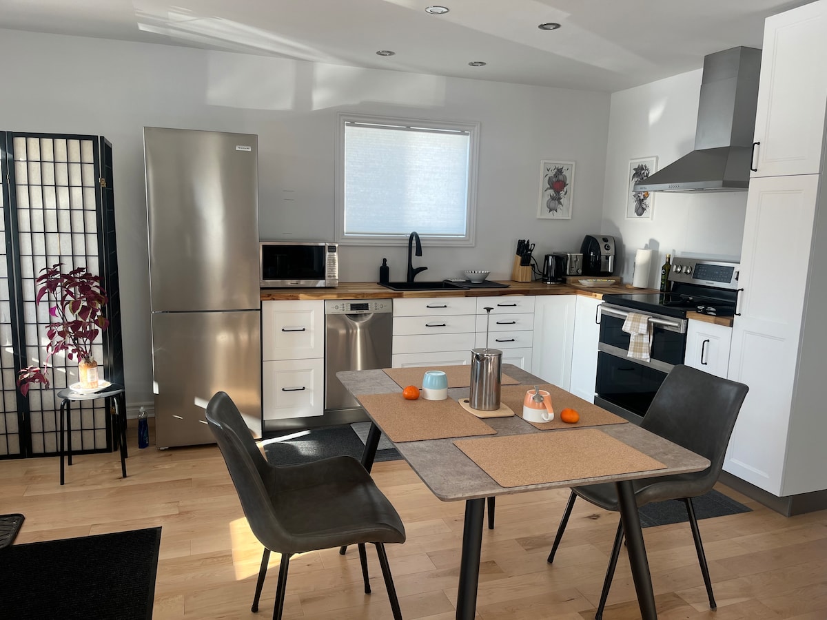 Compord Nua - Aimseartha in aice LE hAerfort Yul! Níl an tearmann galánta seo ach 15 nóiméad ó YUL, ag tairiscint tearmann compoird nua - aimseartha. Gheobhaidh tú gach rud a theastaíonn uait le haghaidh fanacht suaimhneach, lena n - áirítear cistin lánfheistithe le scíth a ligean isteach tar éis lá fada. Suigh siar, bain sult as cupán caife nó tae dea - mhéine, agus féach ar an seó Netflix is fearr leat. Cuir in áirithe anois é agus faigh blaiseadh den mheascán foirfe den áisiúlacht agus den stíl.