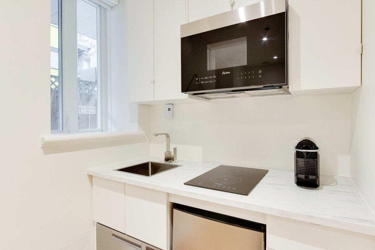 An áit a mbuaileann draíocht Shean - Montréal le compord nua - aimseartha! 🚪 Féinseiceáil isteach le do Phas Cónaithe le haghaidh rochtain ar an bpointe 🛏️ Leaba phluise rímhéide 🍳 Cistin iomlán le sorn, oigheann, cuisneoir, miasniteoir agus meaisín Nespresso Teilifís 📺 Chliste le Netflix logáilte isteach cheana féin 🧺 Meaisín níocháin agus triomadóir san aonad Moltaí páirceála 🚗 in aice láimhe atá ar fáil ar do phas bordála Roghanna stórála 🧳 bagáiste in aice láimhe ) Seiceáil isteach go luath nó seiceáil amach go déanach ar fáil ar iarratas Síniú 🎁 saor in aisce David Hotel mála tote do gach aoi