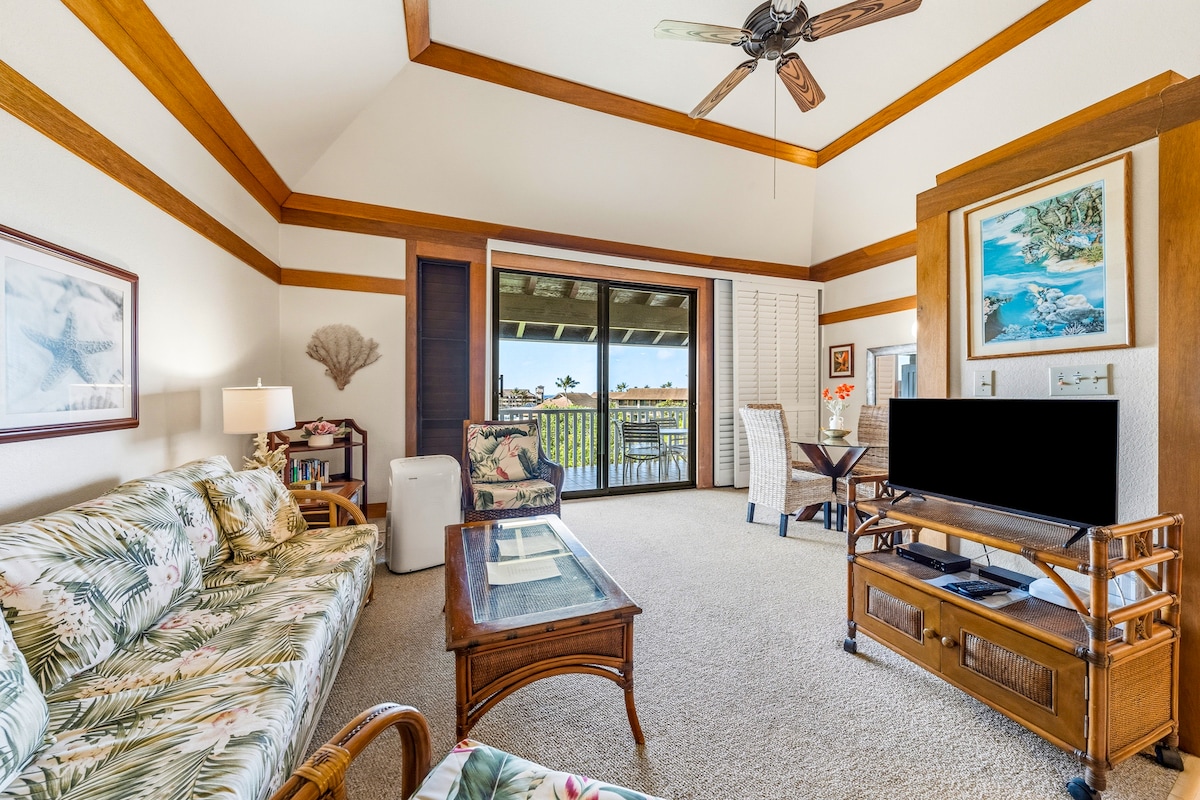 Is é an t - árasán geal aerach seo an áit is fearr le fanacht in Poůipū grianmhar do lánúineacha, do mhí na meala + do theaghlaigh bheaga. Tá an spás maireachtála oscailte glan agus fáilteach le atmaisféar boho cois cósta, agus bainfidh tú taitneamh as radhairc áille ar an aigéan + ón lanai ollmhór uachtair. Is é an suíomh an rud is fearr ar fad - ón réadmhaoin cois trá, is féidir leat siúl chuig roinnt de na tránna is fearr ar an gcladach theas, caife áitiúil, bialanna, siopaí, agus an linn snámha dhochreidte laistigh de nóiméad.