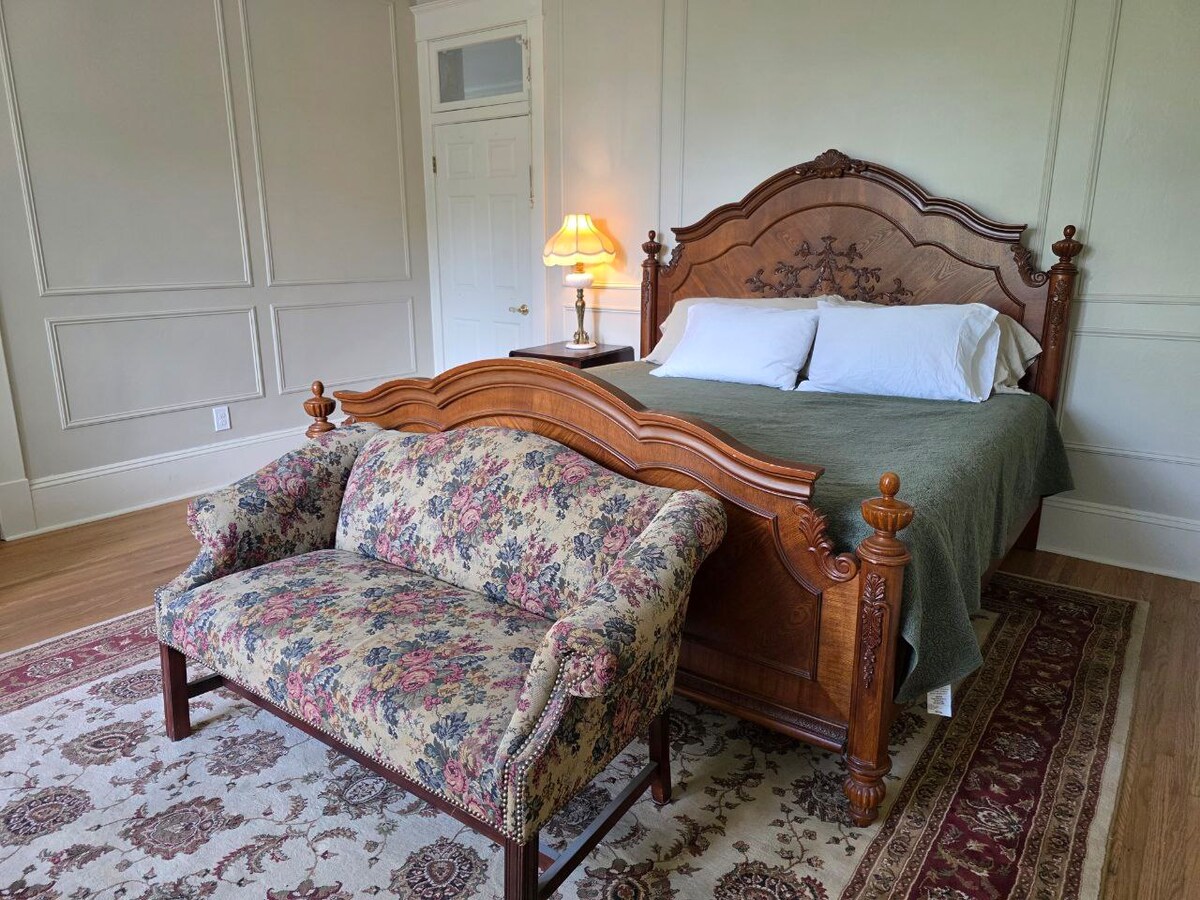 Get away from it all when you stay under the stars! This lovely canvas tent has a comfy queen size bed, tables and chair with ottoman. There’s outdoor seating on the deck, a table and chairs outside and a lovely spot to enjoy an evening fire! We have an outdoor shower and bathroom for your use along with an outdoor kitchen where we are happy to offer coffee and baked goods for breakfast when available! Please let us know if you’d like those in advance. We also just installed solar power!