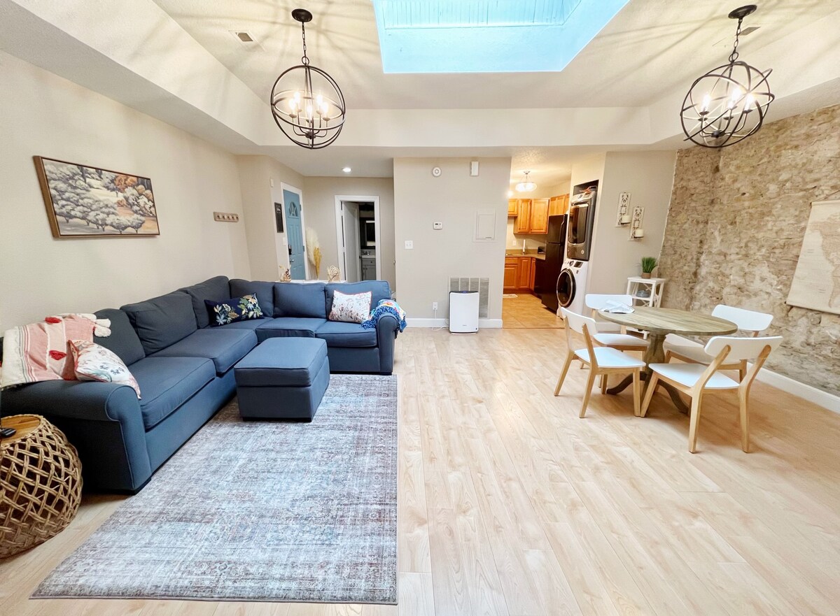 Fáilte go dtí ár svuít nua-athchóirithe, ciúin, cluthar i gcroílár Lawrence, Kansas! Níl sé ach 5 nóiméad siúil go dtí Mass Street stairiúil i lár Lawrence agus go dtí East Lawrence Art District stairiúil. Tá rochtain iontach againn freisin ar West Lawrence; díreach in aice le 6th Street. Is spás fíor-uathúil gleoite é seo le bheith agat féin agus beidh tú cúpla nóiméad ó Champas KU, ó ghrúdlanna, ó ionaid stairiúla, páirceanna, leabharlann, bialanna agus go leor eile! Cuireadh urláir nua isteach i mí Eanáir 2026! Uimhir Cheadúnais: RLMF -22 -00082