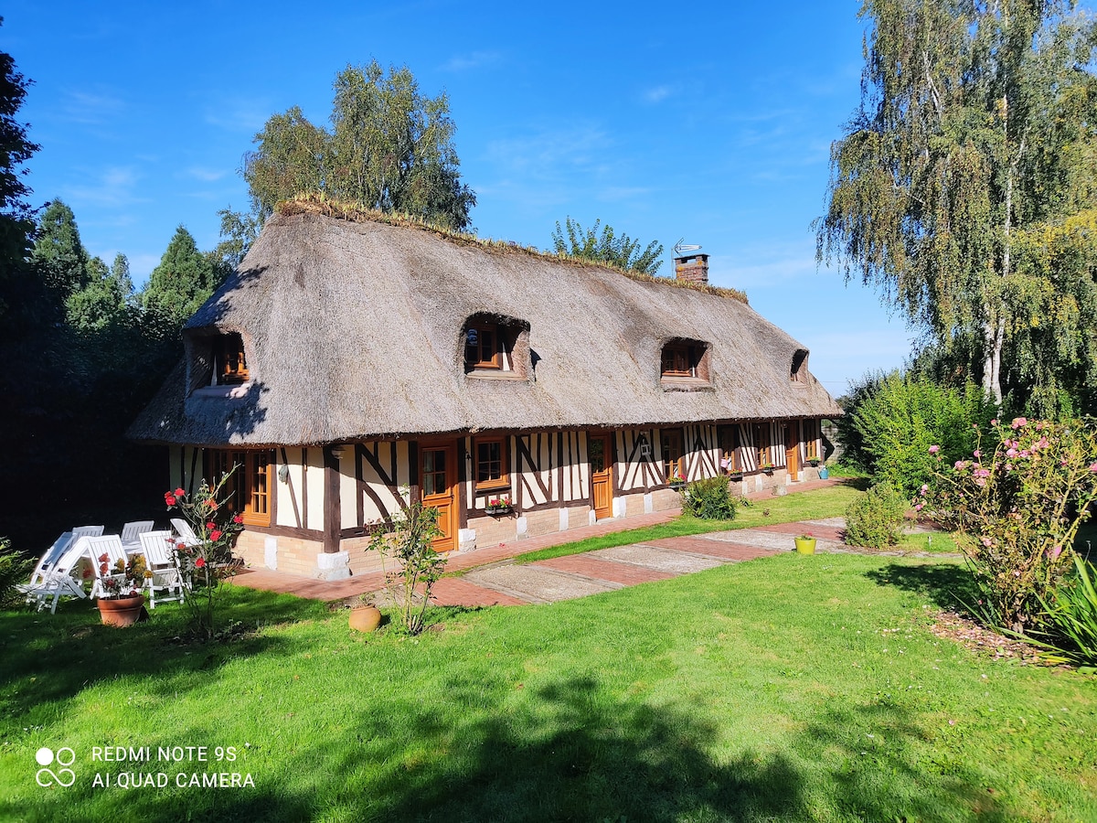 Teachín ceann tuí eisceachtúil i stíl Normannach in aice leis an dara teach ag breathnú amach ar dhá ghairdíní ollmhóra coillteacha. Ideal do thurasóirí, tréimhsí fanachta gairmiúla. Ardán maisithe, Páirceáil. Áit fhoinsithe atá suite 25/30 nóiméad ó Rouen le rochtain mhórbhealaigh. Suíomhanna tarraingteacha iomadúla: Le Bec Helloin, caisleáin, páirceanna ainmhithe, ionaid eachaíochta, bonn fóillíochta faoi mhaoirseacht a thairgeann gníomhaíochtaí uisce 5 km ar shiúl. In aice le bruach na farraige: Honfleur Cabourg Dauville Etretat.