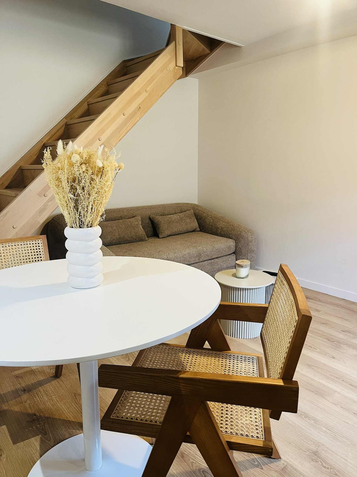 Is stiúideo álainn é an stiúideo "la halte ducale #2" i gcroílár Charleville - Mézières díreach 200m agus 3 nóiméad ón gcearnóg ducal! Lonnaithe ar chúl an chlóis, cuireann an tearmann síochánta seo eispéireas uathúil ar fáil a chuireann draíocht bharántúil agus compord nua - aimseartha le chéile. Seasann ár dteach, atá athchóirithe go hiomlán, amach mar gheall ar a charachtar barántúil agus a ghile eisceachtúil. Smaoiníodh go tuisceanach ar gach mionsonra chun timpeallacht mhaireachtála thaitneamhach shuaimhneach a chur ar fáil.