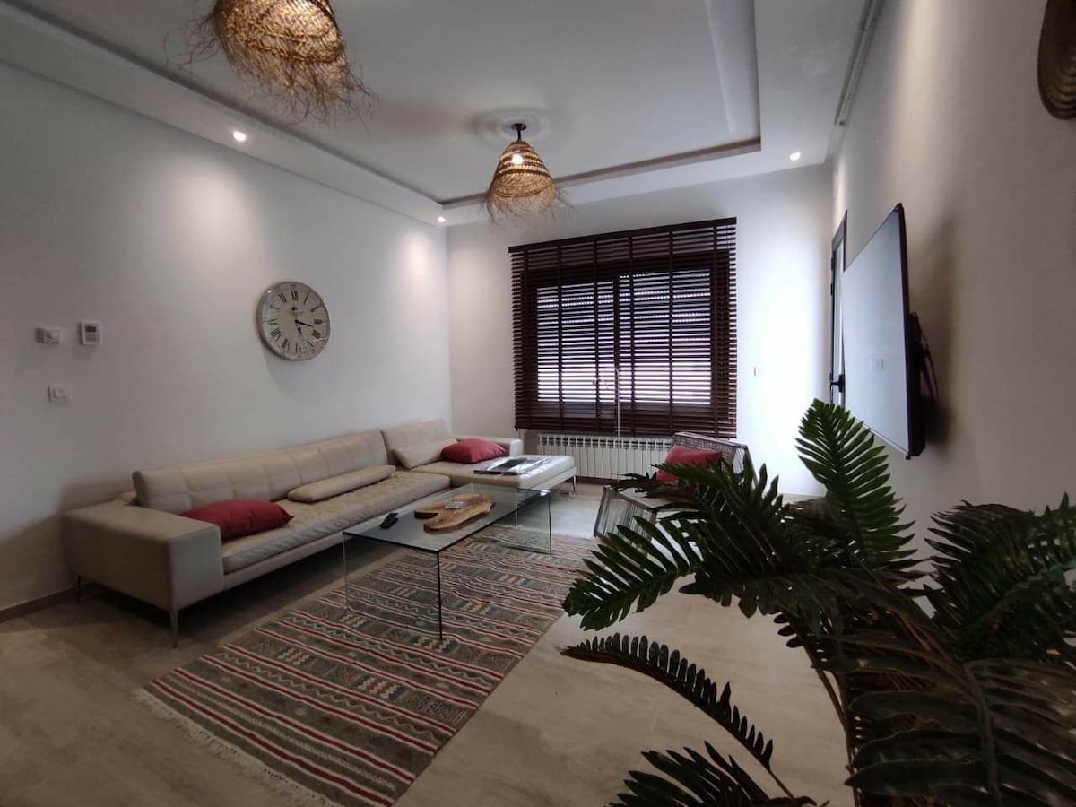 Tearmann cluthar in Túinis Éalaigh chuig ár n-árasán suaimhneach, atá suite go háisiúil i gcomharsanacht chiúin. Bain sult as rochtain thapa ar phríomhthaitneamhachtaí Túinis (an t-aerfort, an ceantar turasóireachta, Carrefour, bialann, siopaí, lár na cathrach). Sa spás nua-aimseartha seo tá seomra suí geal, balcóin ar a bhfuil radhairc gan bhac, seomra leapa ina bhfuil áit feistithe, agus cistin lánfheistithe. Lig do scíth sa jacuzzi sa seomra folctha, bain sult as an linn snámha nó oibrigh sa spás comhoibrithe. Slándáil 24/7 ráthaithe.