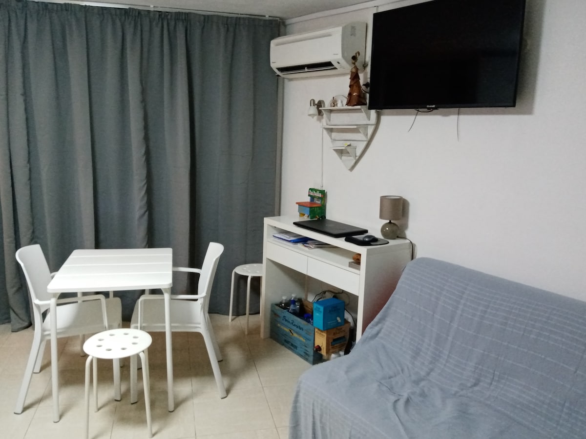 Stiúideo álainn athchóirithe i dtimpeallacht phribhléideach cois farraige ina bhfuil ardán ag breathnú amach ar an ngairdín agus ar an bhfarraige atá os comhair Charraig an Diamaint, i gcomhúinéireacht bheag chiúin ( 3 árasán a bhfuil an fhéidearthacht ann 2 árasán a ligean ar cíos le chéile) atá suite 2 km ón Diamond Village, a thrá mhór agus gach saoráid.2 tránna beaga 300 méadar ón árasán (siúlóid 8 nóiméad). DEIS AN T - ÁRASÁN TURCAIDGHORM A ligean AR CÍOS A LIGEANN DUIT FÁILTE A CHUR ROIMH THEAGHLACH ina bhfuil stiúideo Azur