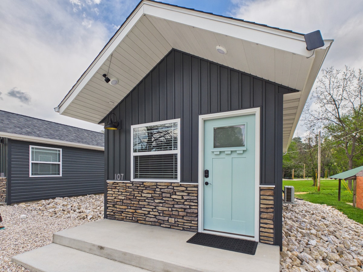 Lig do scíth ag an áit chluthar seo le fanacht. Níl sé ach 10 míle ó Fort Leonard Wood. 1 mhíle ó chlub scrín Pulaski. Tógtha 10/22. Bain sult as an spás seo ina bhfuil póirse tosaigh gleoite Le radharc álainn ar ár lochán. Pit Dóiteáin. King Suite 1 leaba, agus stáisiún vanity i máistirsheomra. Seomra folctha, cistin iomlán le caife/uachtaróir tae, suí agus áit itheacháin. Foirfe do lánúineacha, do ghrúpaí de bheirt. Is comhchábán é seo más mian leat infhaighteacht cábáin theolaí 2 a sheiceáil do ghrúpaí níos mó.
