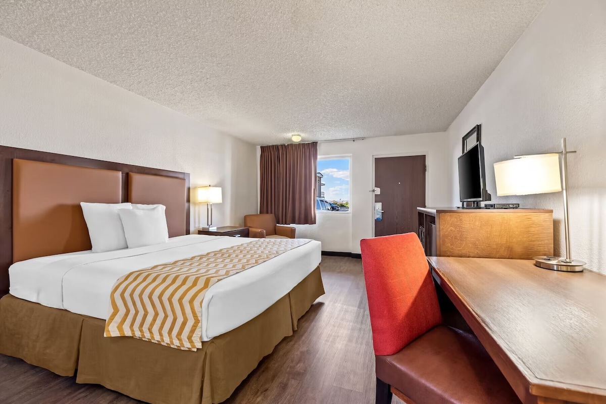 Located in Page, Arizona near Lake Powell and Antelope Canyon, this hotel is a convenient base for outdoor adventures and sightseeing. This room features a king bed, work desk, and ample space for relaxation after a day of exploring. Ideal for solo travelers or couples seeking comfort and accessibility.