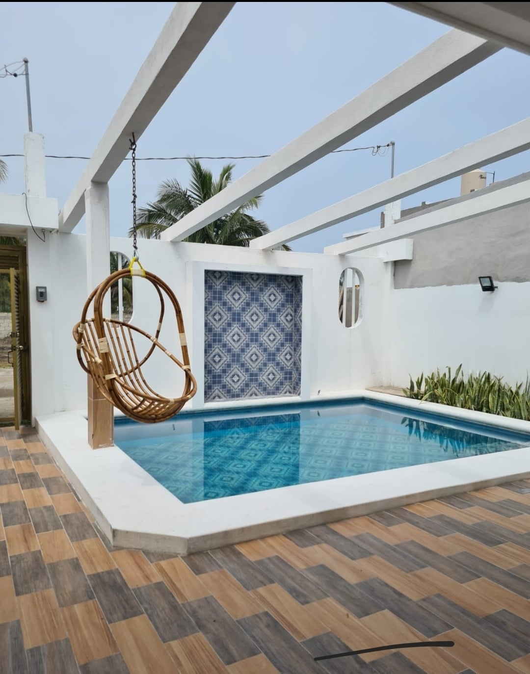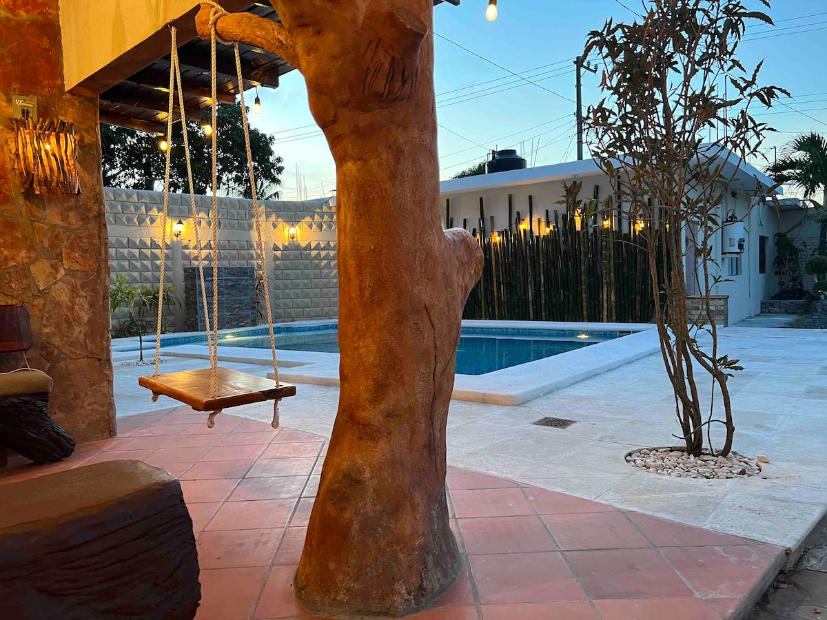 Teach deas, atá suite 70 m ó thrá an - chiúin, foirfe don chuid eile nó don obair. Linn snámha (lána snámha, doimhneacht 1 méadar 60). Caoga m2 de ghairdín gairdín, oiriúnach le haghaidh campála Tá an cithfholcadán agus an leithreas neamhspleách, mar sin tá siad compordach agus feidhmiúil. Radharc deas ón díon. Cistin fheistithe. 29 k ón gCrios Seandálaíochta Quiahuiztlan. Siopa grósaera 3k (Santa Ana).