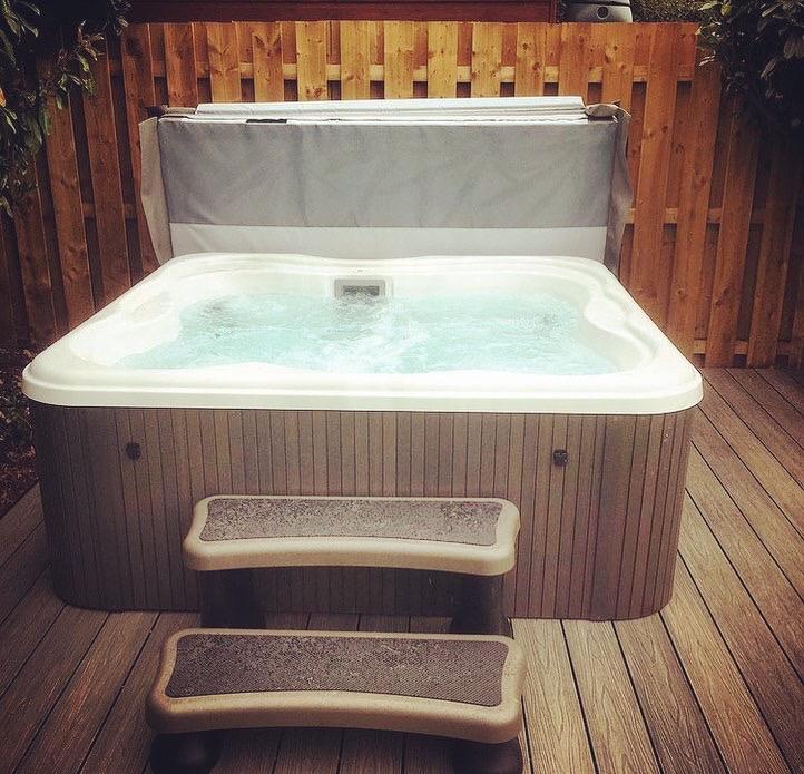 Scioból sómasach uathúil ina bhfuil tobán te príobháideach adhmadbhreoslaithe