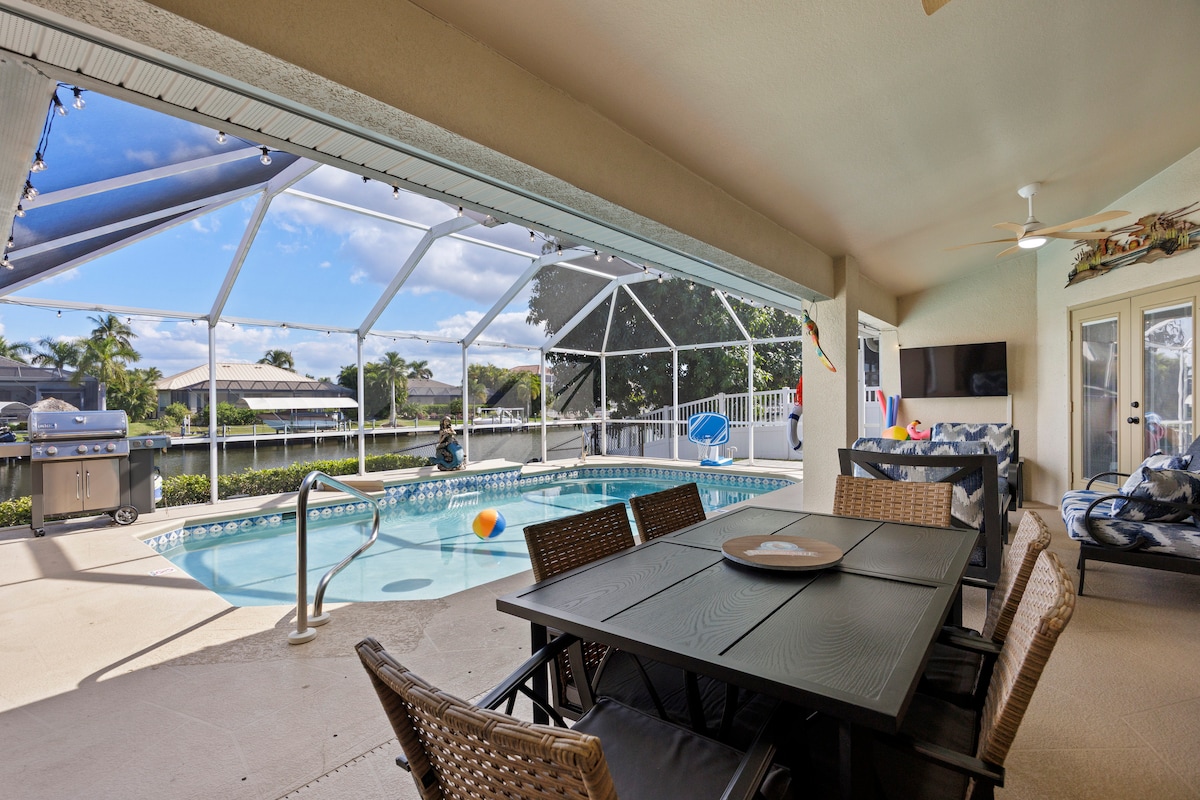 LASCAINÍ: Seachtainí...1=10%, 2=15%, 3=20%, 4=25%. Fáilte chuig an "Oasis "! Éalaigh go dtí an t - uisce agus fan ar chanáil álainn in Cape Coral álainn! Bain sult as an teach folctha 3 sheomra leapa seo, 2 sheomra folctha. Téigh ag snámh sa linn snámha, suí ar an bpaitió, iasc ón duga, suí ag an mbeár tiki le haghaidh dí, nó glac nap ar an lanai chun imeacht uaidh ar fad! Tá duga 50 troigh ar fhad ann le 30 agus 50 amps, mar sin tabhair leat do bhád! Tá rochtain ar an Murascaill ar bhád agus ar Ft Myers Beach & Sanibel/Captive Island gníomhaíochtaí agus tránna in aice láimhe!!