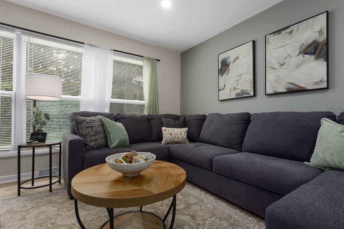 I lár bhaile Lees Summit, meascann ár 2 leaba, 1 sheomra leapa Airbnb dearadh nua - aimseartha le draíocht stairiúil. Leaba shuaimhneach rí - mhéid sa mháistir, leaba roithíní cúpla sa seomra aíonna ina bhfuil spás oibre tiomnaithe. Seomra folctha galánta le daingneáin nua - aimseartha. Suite go foirfe le haghaidh bia, siopadóireachta agus siamsaíochta. Spás maireachtála teolaí, cistin dea - fheistithe. Wi - Fi tapa. Do theach idéalach ar shiúl ón mbaile i lár an bhaile. Déan áirithint anois le haghaidh eachtra dhodhearmadta de chuid Lee's Summit!