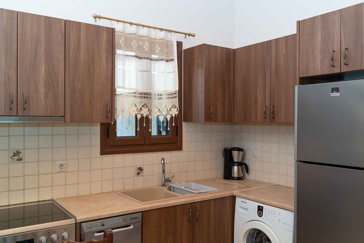 Glac céim siar san áit uathúil shuaimhneach seo le fanacht. I lár an dúlra tá sráidbhaile beag sléibhe Kavalos sa teach aíochta gleoite seo ina bhfuil linn snámha in aice láimhe (10x4.5). Timpeall an ardáin mhóir linn snámha le tolgairí gréine agus gairdín ina bhfuil suíocháin agus cuisneoir. Tá dhá bhalcóin phríobháideacha sa teach aíochta ina bhfuil suíocháin agus oigheann píotsa. Ina theannta sin, cistin lánfheistithe agus seomra folctha fairsing.