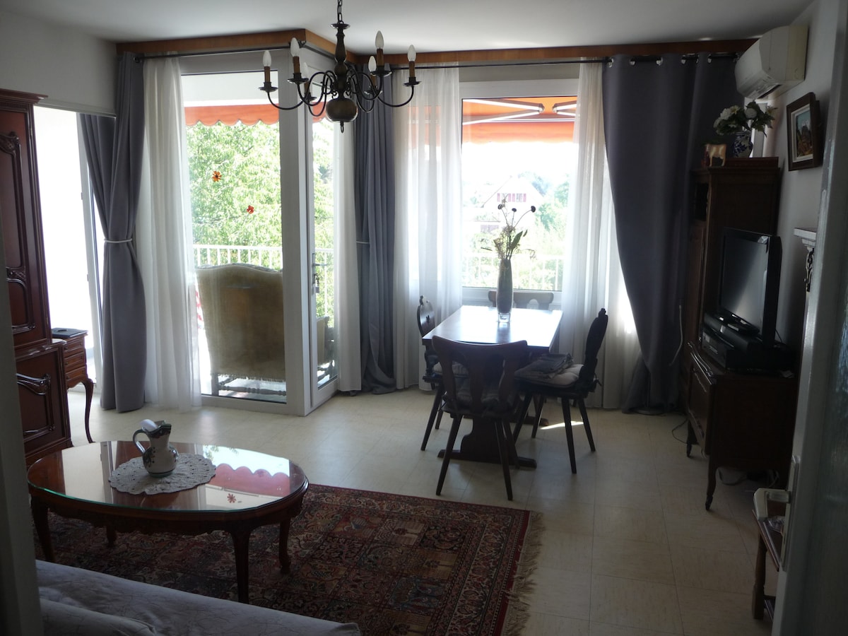 Árasán an - chiúin atá suite ag bun na bhfíonghoirt a cheadaíonn siúlóidí fada áille. Tá go leor siopaí agus gníomhaíochtaí sa cheantar faoi fhad siúil éasca. Ideal d'oibrithe nó d'aíonna. Rochtain éasca ar an traein agus sa charr. Ná bíodh aon leisce ort teagmháil a dhéanamh liom le haghaidh tuilleadh eolais faoin lóistín nó faoin gceantar máguaird ( cuideachtaí, gníomhaíochtaí, modhanna taistil... ) Le dea - mhéin