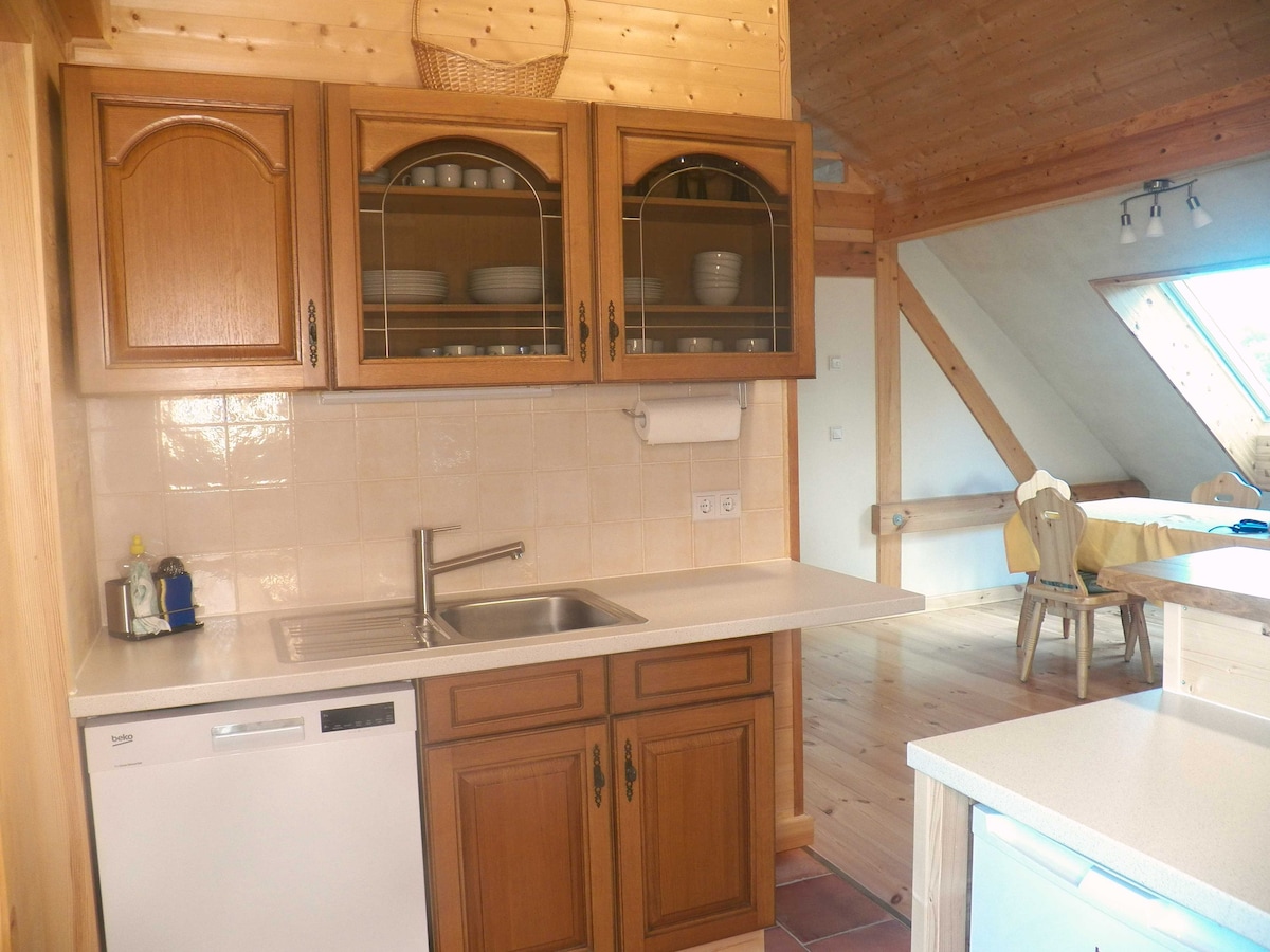 Tá ár n - árasán saoire teolaí do bheirt suite i dteach cónaithe atá tógtha ó thaobh na héiceolaíochta de i sráidbhaile beag Möllen. Chomh maith le seomra ina bhfuil thart ar 25 méadar cearnach, tá bealach isteach ar leith ann, le halla agus seomra cithfholcadáin agus saoráid bheag chócaireachta. Ón árasán tá radharc iontach agat ar Loch Schwieloch. Sa ghairdín mór tá áit suí agus tolglann teolaí ar leith agus tugann an lamairne ar loch an dúlra cuireadh duit iascaireacht a dhéanamh, luí na gréine agus luí gréine rómánsúil.