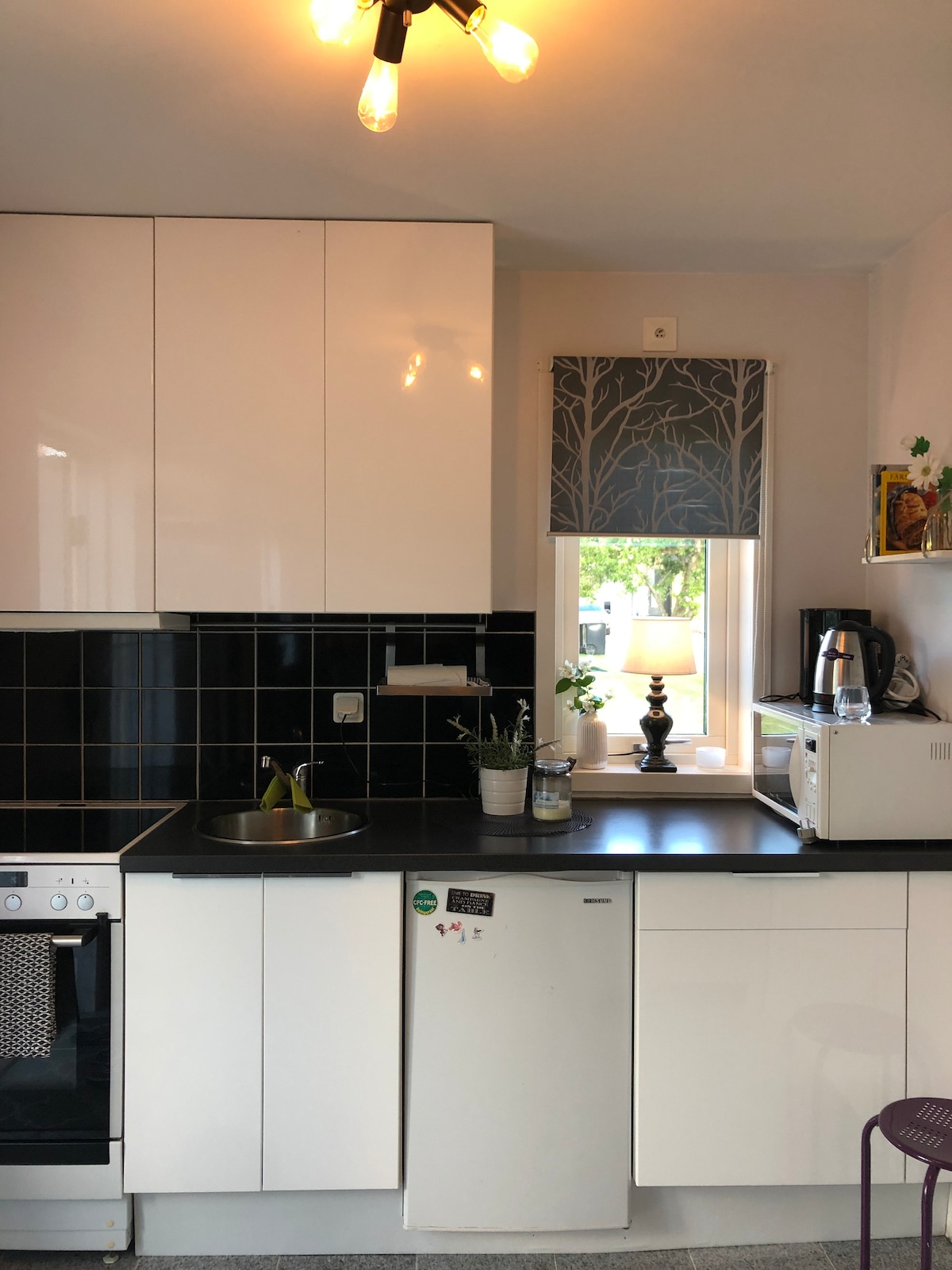 Is lóistín álainn é Minibacke faoin tuath in Nykulla, 2.5 km ó thuaidh de Växjö. Tá cónaí oraibh i scioból nua-athchóirithe agus tá páirceanna agus foraois taobh amuigh den chúinne agus tá go leor nithe is díol spéise in aice láimhe. Is fearr a oireann an chóiríocht do bheirt. Is féidir leat béilí éadroma a chócaráil sa chistin. Tá sorn, micreathonnán, gléas caife agus cuisneoir le hurrann reoiteora ar fáil. Teilifíseán cliste le Google Chromecast agus barra fuaime ar féidir Bluetooth a úsáid leis. Seomra folctha le leithreas, cithfholcadán, meaisín níocháin agus triomadóir. Seomra allais agus folcadán lasmuigh le huisce te. Tá 2 rothar san áireamh.